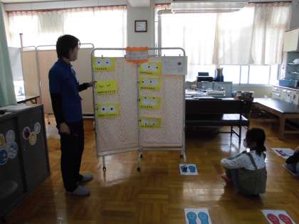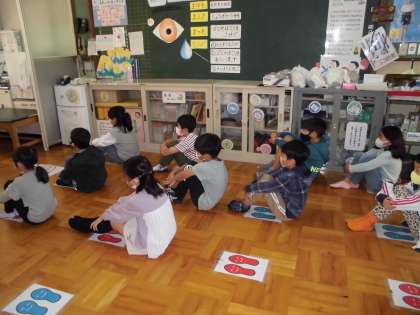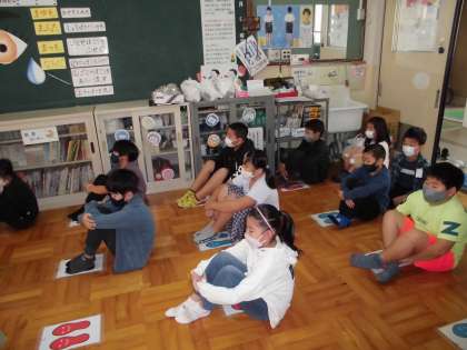 10月10日は、目の愛護デーでした。今日の視力検査では、目の体操をして、視力についてのお話を聞きました。これからも目を大切にしてほしいと思います。