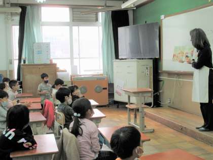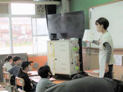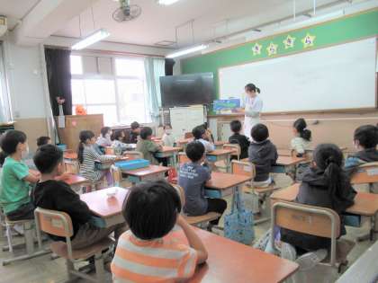 今週は図書ボランティア「うめのこさん」による読み語りがありました。1年生たちにとっては、3回目の読み語りです。