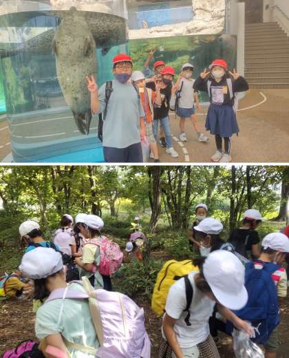 先週14日(金)は水族館へ遠足に行きました。水族館では生き物に関するクイズラリーを2年生たちと一緒に楽しみました。水槽をじっと見て、お気に入りの生き物を見つけたり、悠々と泳ぐ魚たちに驚いたり、とても楽しんでいる様子が見られました。