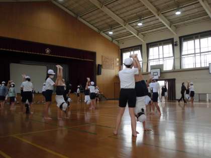 体育館で,運動会の練習をしていました。最後まであきらめずがんばっています。
