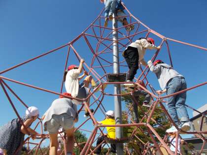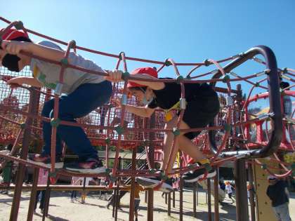 学校の遊具とは少し違う遊具に,とっても大喜び。