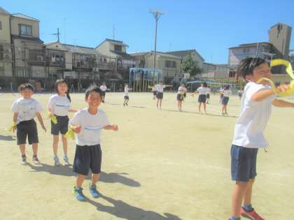 外で練習できる機会もあとわずかです。運動場では、列をそろえたりまっすぐ歩いたりする練習に力を入れています。前は踊りに集中していたため、まっすぐの列になるのが難しかったのですが、少しずつダンスに余裕が出てきたためか、踊りで場所がずれてもすぐ自分で修正できるようになってきました。