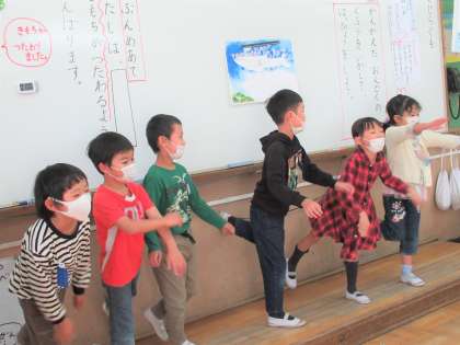 国語科『くじらぐも』の音読発表会の様子です。グループで相談した発表の工夫をたくさん生かすことができました。くじらや子どもたちの楽しそうな様子がいっぱい伝わってくる素敵な発表会でした。