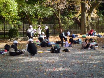 広場のようになっているところで,友だちとお話ししたり,少しお散歩をしたり,これからの図工の学習で使う木の枝を拾ったりしました!