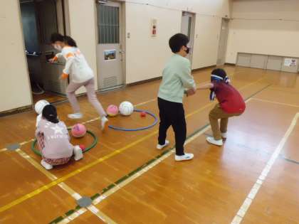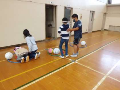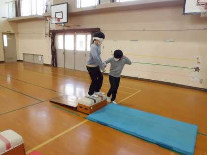 「こわいこわい!」「どこ歩いてるかわからへん!」など,素直な気持ちを口に出しながら体験していました。