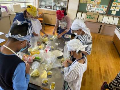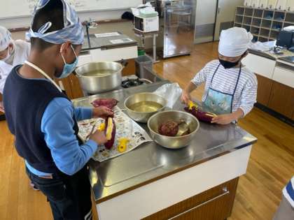 サツマイモを湯がいて、潰したものにバターと砂糖を加えて、味付けをしました。