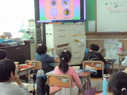 11月の和献立は、鯖でした。大きな骨をお箸で避けるのも上手になり、脂ののった鯖を味わっていました。今日の献立は、鯖以外にも旬の食べ物がたくさんです。ビデオを見ながら、「これも今が美味しいんだ〜!」と楽しそうに食べていました。