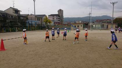 体育の「ボールけりゲーム」がついに開幕しました。今回はお試し試合ということでルールを確認しながらのゲームでした。練習したパスをつなぎシュートしたり,ドリブルしてボールを運んだりしていました。点数を決めて大喜びでした。白熱した試合ができればと思います。