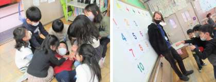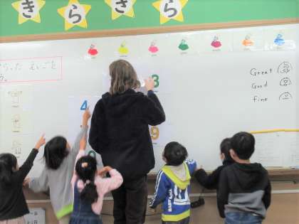 色探してタッチするゲーム、言われた数字の人数で集まるゲームなど、みんなでわいわいと盛り上がって楽しみました。来年も英語の学習で楽しく盛り上がれるといいですね!