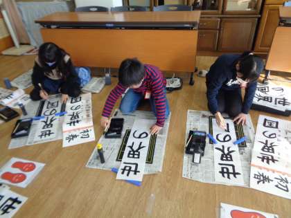 書写の学習で書初めをしました。今回は、「世界の国」とういう字を書きました。バランスを整えるのが難しかった様子でしたが、一生懸命書くことができました。