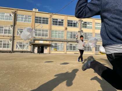 みんなで一斉に凧あげをしました。