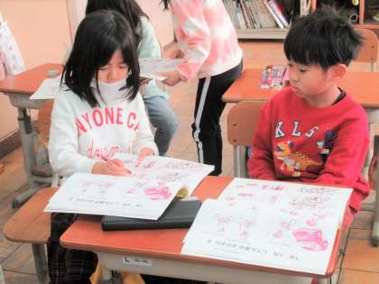 教室の絵のイラストから、散らかっていると避難の時に邪魔になることや棚の上に物が置いてあると落ちてくるかもしれないなど、いろいろな危険を発見できました。お家でも学校でも、いざという時のために普段からしっかり安全を考えて環境を整えておけるといいですね。