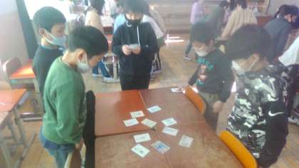 読み札の漢字を読むのに少し苦労しながらがんばっていました。