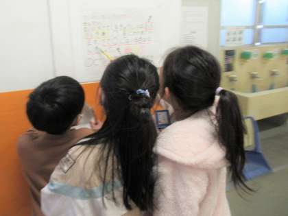 給食習慣では、給食委員さんや給食調理員さんが素敵なイベントを企画してくれています。写真はクイズラリーの様子です。1年生たちも、用紙と鉛筆を片手に楽しそうにクイズを解いています。正解者には、ちょっとしたプレゼントもあるようです。正解目指して、頑張りましょう!