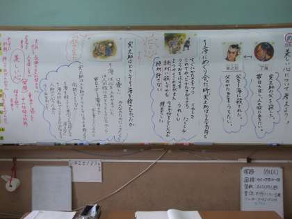 道徳の学習で「美しい心」について考えました。なぜ、主人公に心の変化があったのかを考えることで、「今のその人の姿をしっかり見る。」「許せないことでも冷静に判断する。」など、子供たちなりに意見をまとめていました。