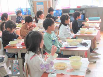 1月から2月にかけて、お正月や節分など日本らしい献立がたくさん出ています。2月7日の和献立では、「甘辛鶏大根」にちなんで『五味』に関する動画を見ながら給食を食べました。
