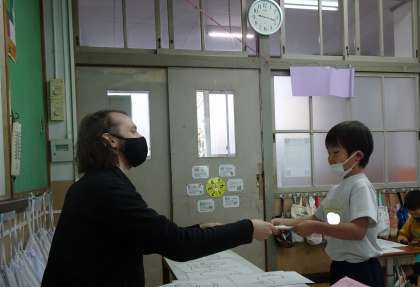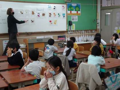 2年生としてアンディー先生との学習は最後でした。2年生のみんなはアンディー先生が大好きです。いつも明るく元気に教えてくれます。一緒にやるゲームはいつも大盛り上がりでした。