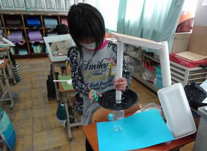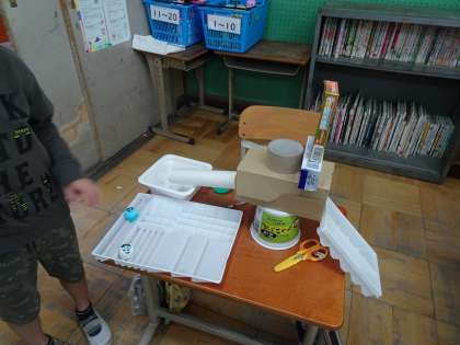 ペットボトルのキャップで小さな友達を作りました。そしてその友達が楽しく幸せに暮らせるお家を作り始めています。「滑り台があったら楽しいだろうな。」「ここはお風呂の部屋だよ。」など,友達のことを想って一生懸命作る姿が見られました。