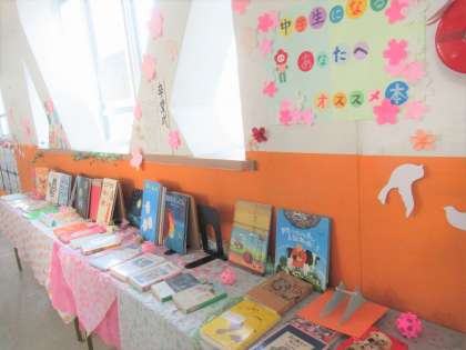 図書ボランティアのうめのこさんたちが、1階の6年生の教室前に卒業生へ向けての特設コーナーを作ってくださっています。卒業まであと僅か。小学校で思い出に残るような素敵な絵本に出会えたでしょうか。