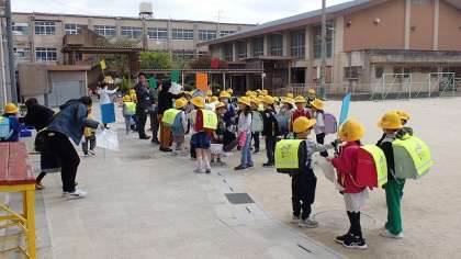 1年生にとって、今日は初めての下校です。しばらくの間は、下校路を確かめたり安全な下校の仕方を知るために、集団下校をします。