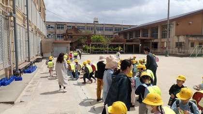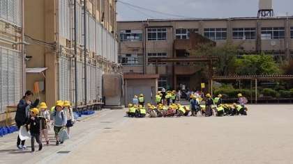コースごとに集まって、引率の教職員と一緒に集団下校しました。帰り道でおうちの方の顔が見えると、うれしそうに手を振っていました。