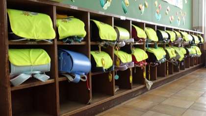 朝の帯時間に1年生の教室をのぞくと、みんな静かに自由帳に絵をかいていました。教室の後ろのロッカーには、きれいにランドセルが収められていました。さすが、みんな立派な1年生です!