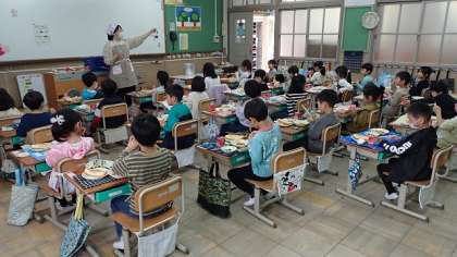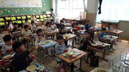 1年生 学校生活の様子「はじめての給食」(4月14日)