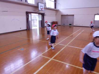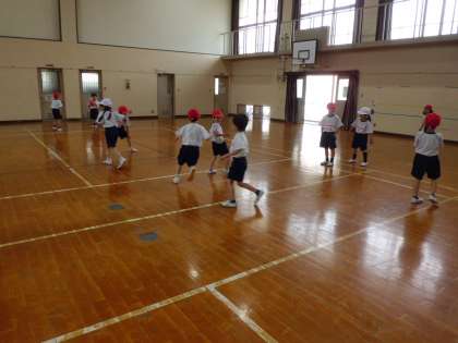 広い体育館で、めいっぱい体を動かして運動しましたね!
