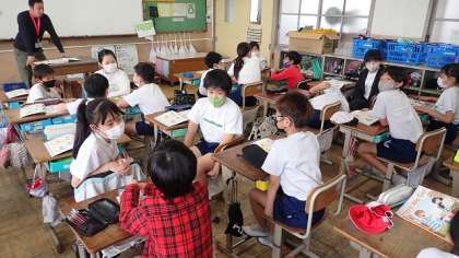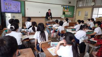今日は、“Warm Up”として、伝え合う時の「4つの大切」について学習しました。“Smile”、“Eye Contact”、“Clear Voice”、“Response”の4つです。子どもたちも、実際のやり取りを通して、これらの大切さを感じ取っていました。