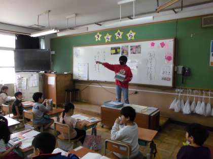 昨日の昼休みに代表委員会がありました。その内容を代表委員の人が、1年生に伝えに行ってくれました。事前に自分たちで集まって打合せをし、1年生にも分かりやすい言葉で話している姿が立派でした。