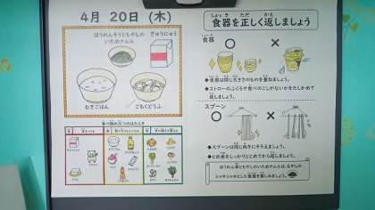 「五目どうふ」には、とうふ、豚肉、たまねぎ、チンゲン菜、しいたけなど、たくさんの具が入っています。しょうがをきかせたとろみのある具だくさんの「五目どうふ」は、ごはんによく合う献立です。ごはんも、おかずも、いつも以上にたくさん食べることのできた子が多かったようです。