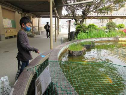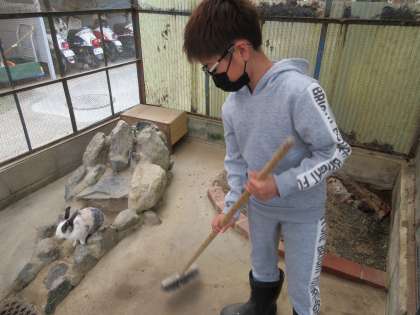飼育委員では、朝休みにうさぎや鯉のお世話をしています。