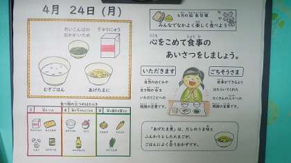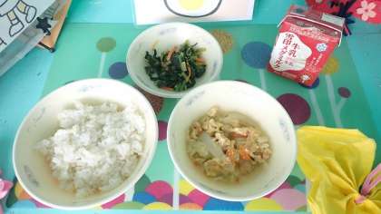 「あげたま煮」は、だしの味が具によくしみ込んでおり、油揚げや野菜の甘みがよく引き出されていました。ふわふわの卵が味をやわらかくしてくれており、ごはんと一緒に食べるとごはんもいつも以上においしくいただくことができました。「だいこん葉のおかかいため」は、だいこん葉の緑とにんじんのオレンジが鮮やかで、見た目も素敵な献立でした。