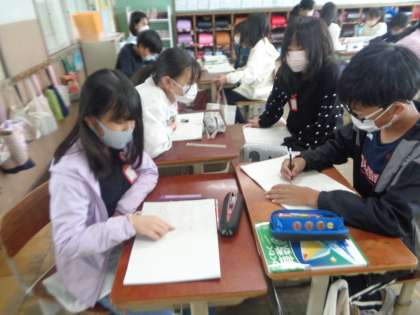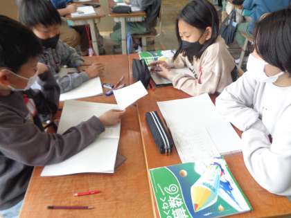 算数科「対称な図形」の学習で、様々な多角形が線対称なのか、点対称なのか考えました。グループでの活動の時間では、理由を説明したり、様々な意見を聞いたりしながら答えを考えることができました。