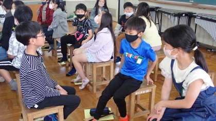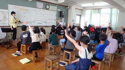 5年生は、音楽の「歌声をひびかせて心をつなげよう」の学習をしています。