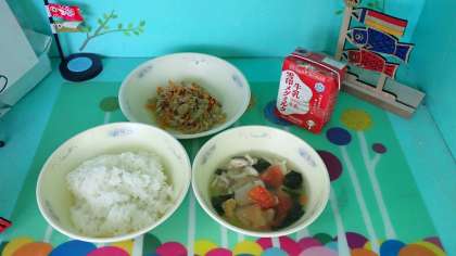 「ツナそぼろどんぶり」は、ごはんに混ぜて食べる献立の中でも特に人気の献立です。甘く味付けされたツナややわらかいたまねぎ、にんじんなどの具をごはんと混ぜると、ちょうど良い味になります。いつもよりもたくさんのごはんを食べることができました。