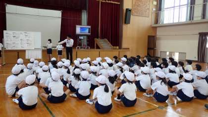 4年生は、5月の学年集会をしていました。