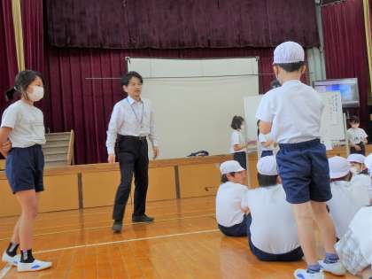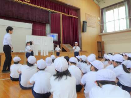5月の学年集会では、4月の学年を目標の振り返りや、学年便りの題名決める活動をしました。