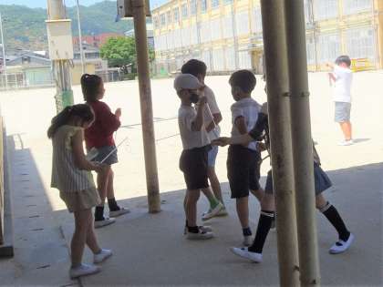 理科の学習で、1日の気温の変化を調べました。担当を決め、1時間ごとに気温を測りに行きました。調べた水曜日は、お日様がギラギラ光る良い天気。みんな5月にしては高めの気温に驚いていました。