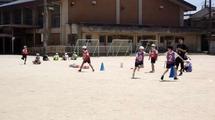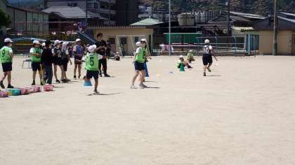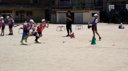 バトンパスのリードも上手になってきました。チームの記録更新をめざして、一生懸命走っています。