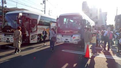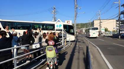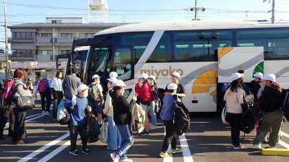 2台のバスに分かれて乗車し、保護者の方に見送られて出発しました。朝早くからのお見送り、ありがとうございました。