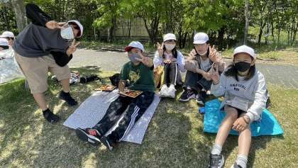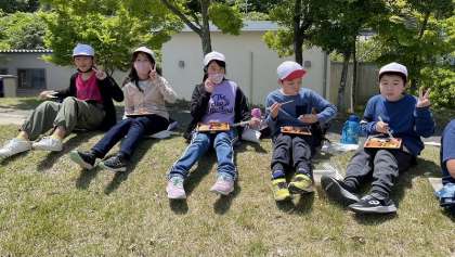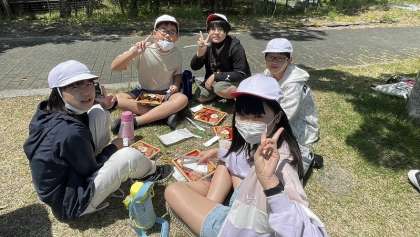 長い時間バスに乗っているので、外でゆっくり体を伸ばしながら、おいしいお弁当をいただきました。道中、バス酔いした子もいましたが、昼食はしっかり食べることができました。