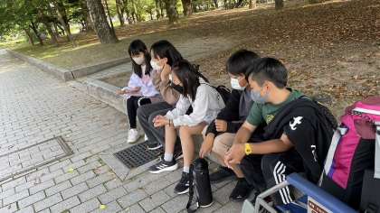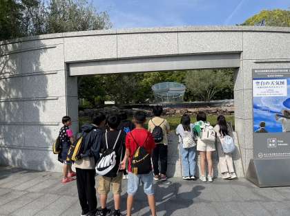 広い平和記念公園内には、周辺ガイドマップで紹介されている施設が50以上あります。休憩を取りながら、限られた時間の中で見学を進めています。