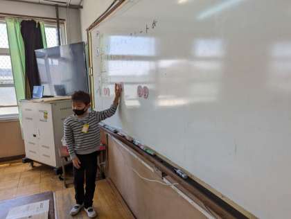 算数科の「わり算」の学習で、答えが10をこえるわり算の仕方を考えました。問題は69÷3です。九九に答えがないので実際にお金の10円と1円を使って考えることにしました。まず10円玉を3人に分けると1人2枚ずつもらえ、1円玉も同じように分けると3枚ずつもらえ、合わせて23円と答えにたどり着くことができました。実際のお金の操作をすることで答えを見出したり、立式することができたりしました。わり算習得に向けて毎日頑張っています。