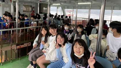 6年生は宮島への渡船のある「宮島口」に到着しました。
