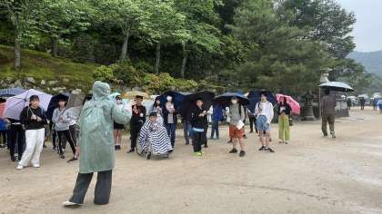 宮島に到着しました。あいにくの雨ですが、厳島神社を見学しました。