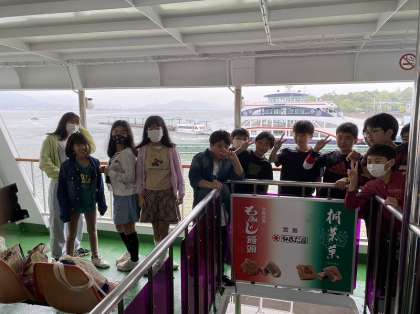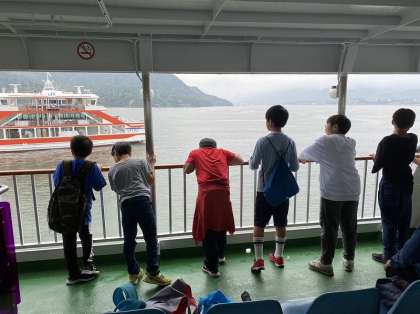 船に乗って、宮島を離れました。楽しかった修学旅行もあと少しになりました。背中もちょっぴり寂しそうです。