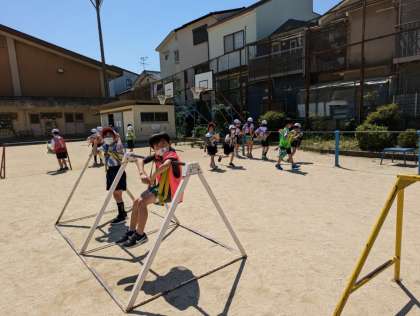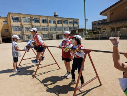 体育科の「鉄棒」の学習に取り組み始めました。3年生になり、技にも名前がつき難しい技にもチャレンジしていきます。ねらい1では、“できる技の連続や組み合わせ”に取り組んでいます。「地球まわり」を何回も連続でしたり、逆上がりから前回り下りの組み合わせをに挑戦したりしていました。ねらい2では、“少しがんばればできそうな技”に挑戦しています。3人組になり、それぞれ目標とする技を技カードや動画を参考にしながら見合ったり、動画で撮ってアドバイスをし合ったりして頑張っています。早速“逆上がり”ができてうれしそうに教えてくれる子もいました。どんどんできる技が増えていくようにチャレンジャー!