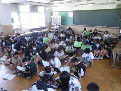 6時間目に学年で集まって山の家の話をしました。山の家で行う、スコアオリエンテーリング・フライングディスクゴルフ・冒険の森・ネイチャービンゴの説明をしました。子どもたちはよりイメージが膨らみ、行く楽しみが増したようです。怪我をせず当日を迎えられるように過ごしていきます。