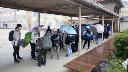 見送りの方々に手を振って、元気に出発しました。雨の中見送りに来ていただいた保護者のみなさま、ありがとうございました。